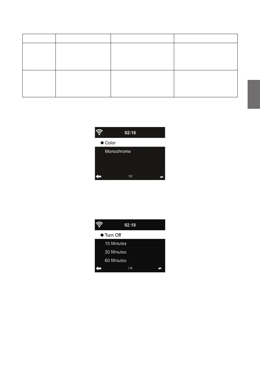 15/30/60/90/120/150/180 minutes. Une fois le temps est chois, un icône de lit avec les minutes