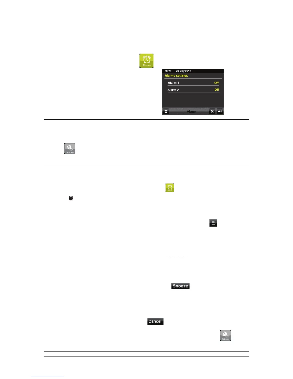 c. Um den Alarm permanent auszuschalten wählen Sie im Hauptmenü > Settings >