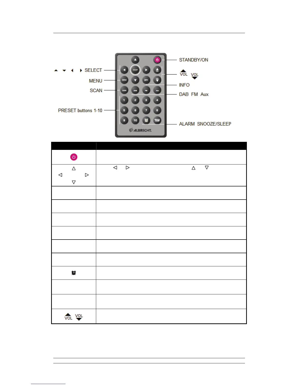 SCAN In DAB, FM mode: Press to autoscan for active stations.