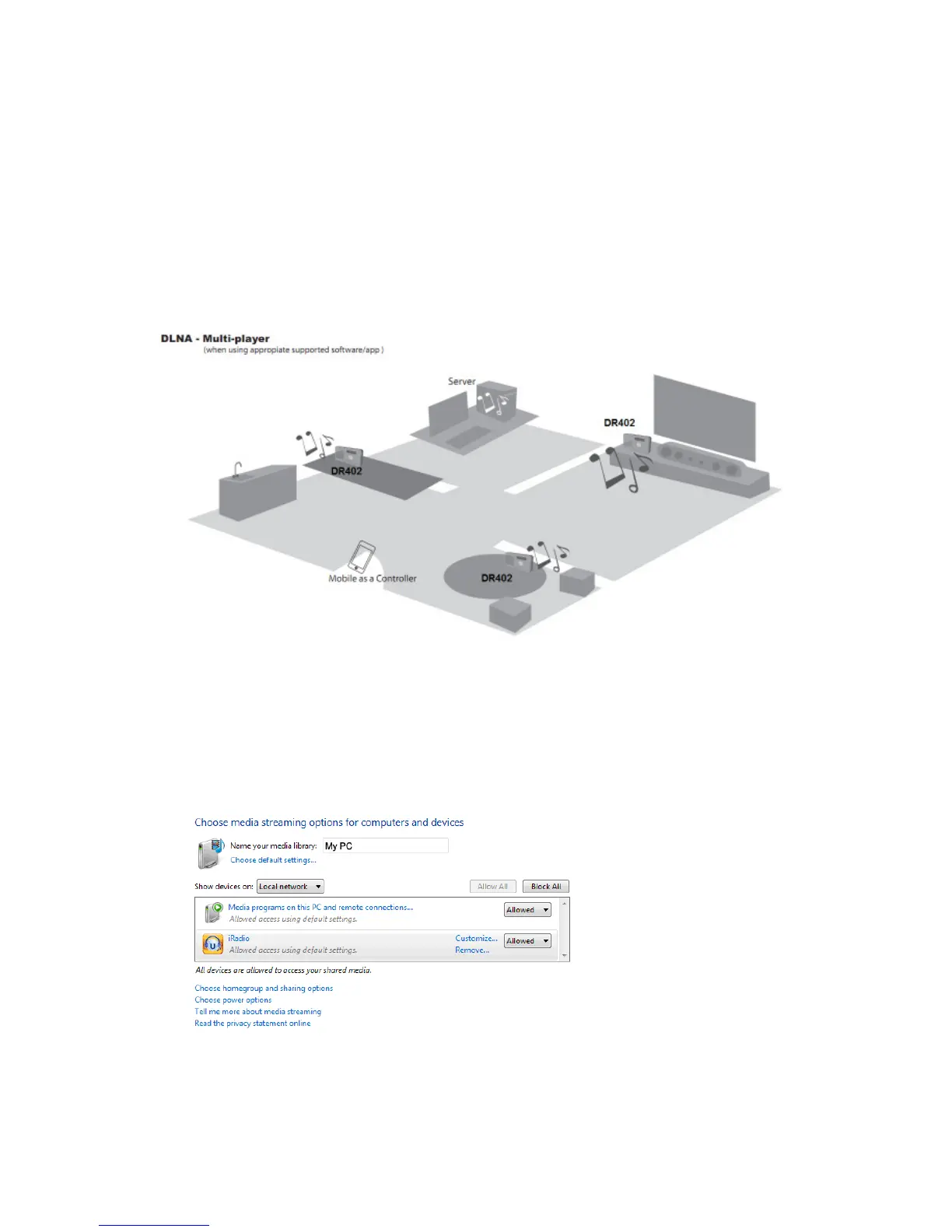 • Neben UPnP unterstützt der DR402 auch die DLNA-Funktion.
