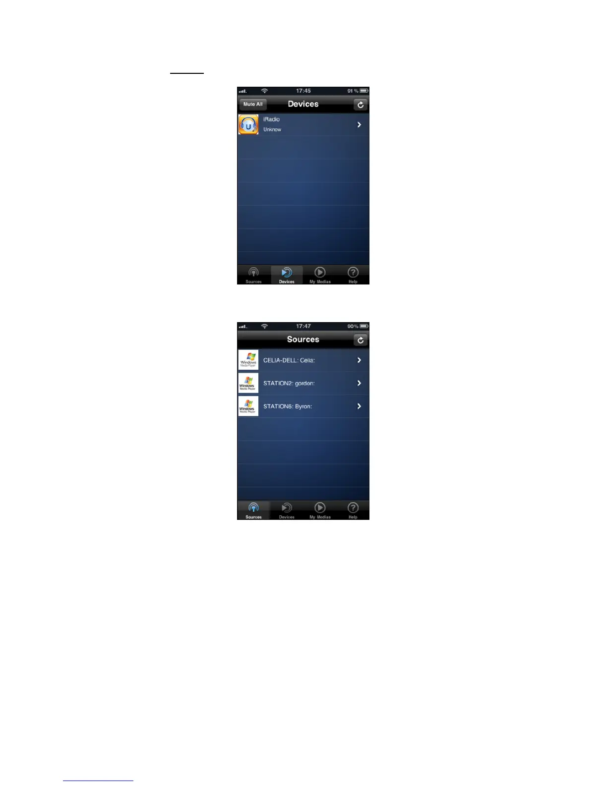 Voici un exemple de contrôle par le logiciel mediaCTRL d'Awox via un iPhone :
