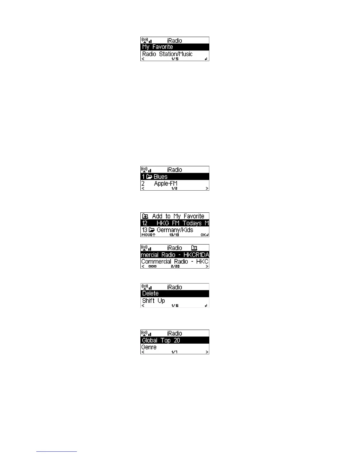 Lista della mie stazioni preimpostate favorite. Essa supporta 250 elementi preferiti incluso stazioni