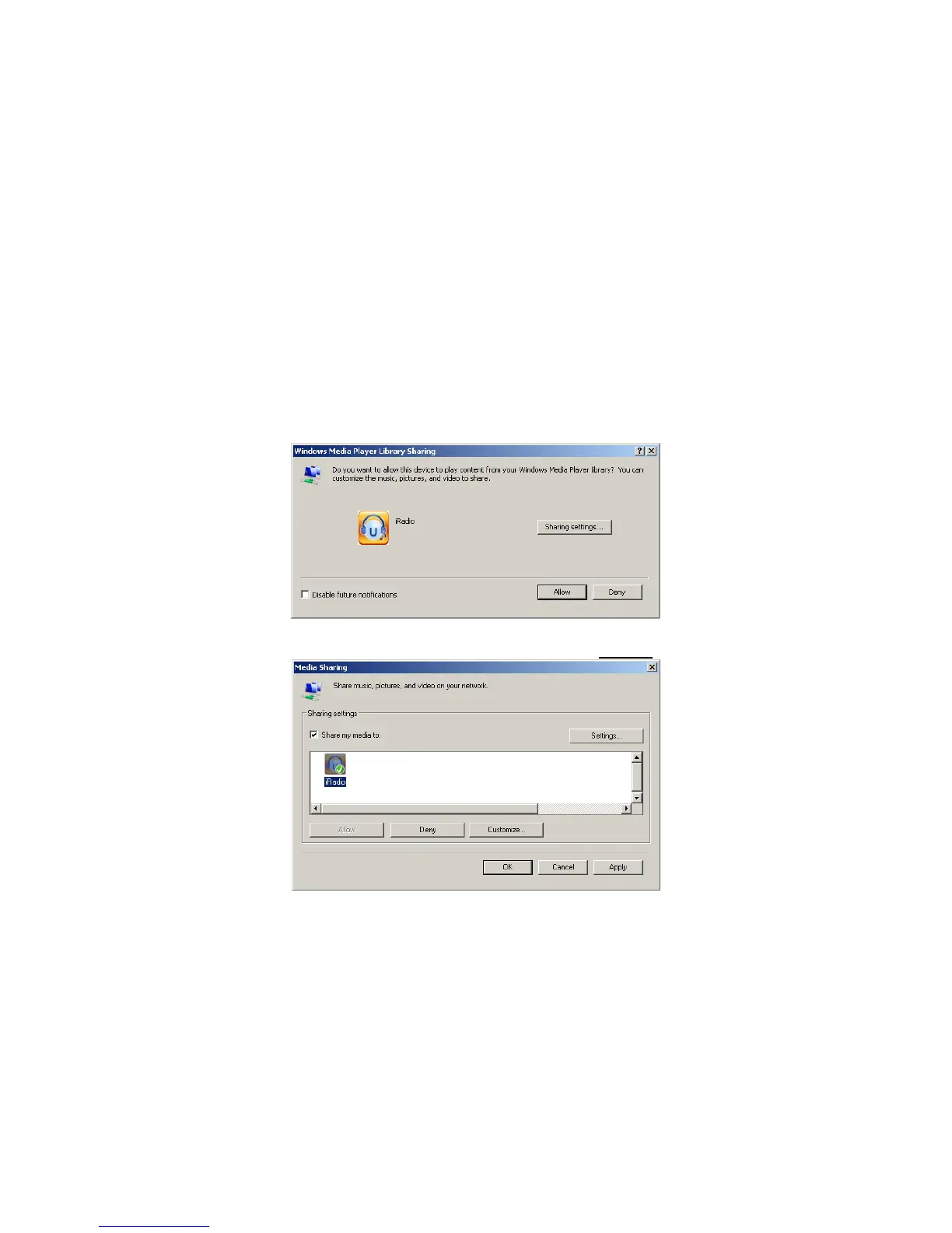 • Per godersi la musica in streaming dal PC, devono essere effettuati i seguenti passaggi sul PC: