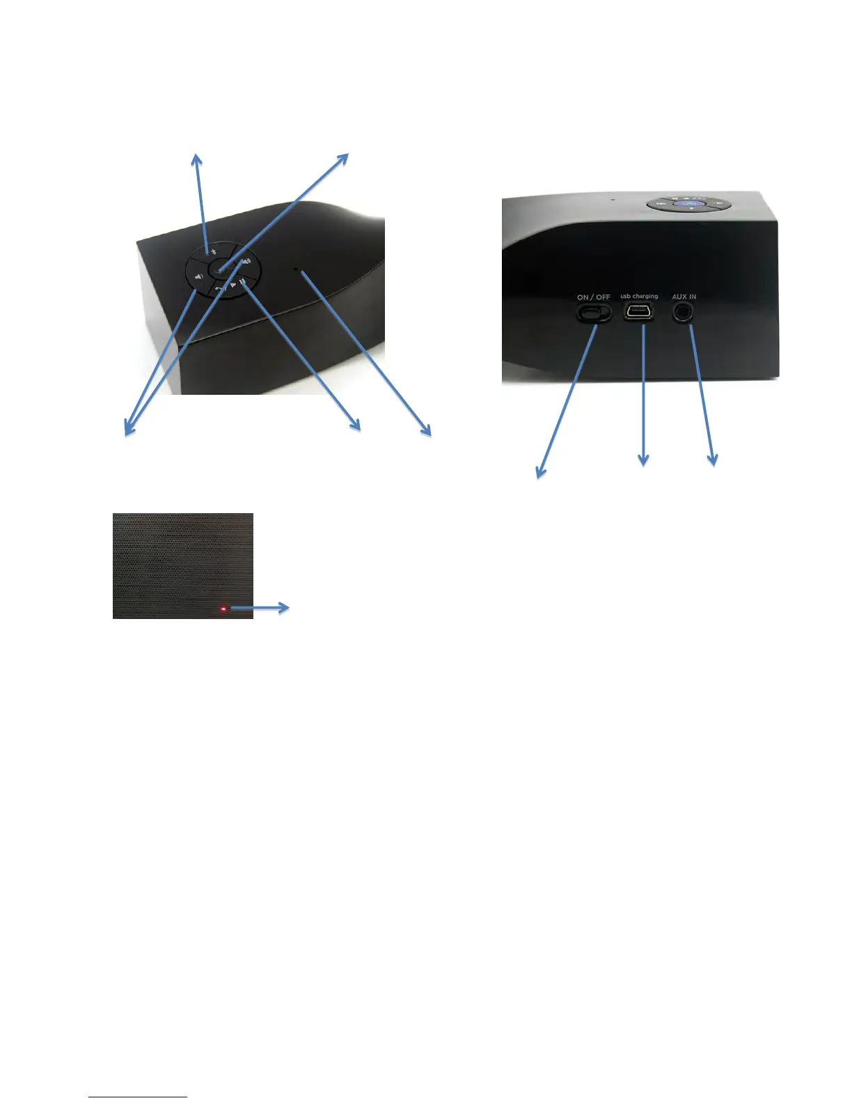 ON/OFF sliding switch | mini USB charging port | AUX-