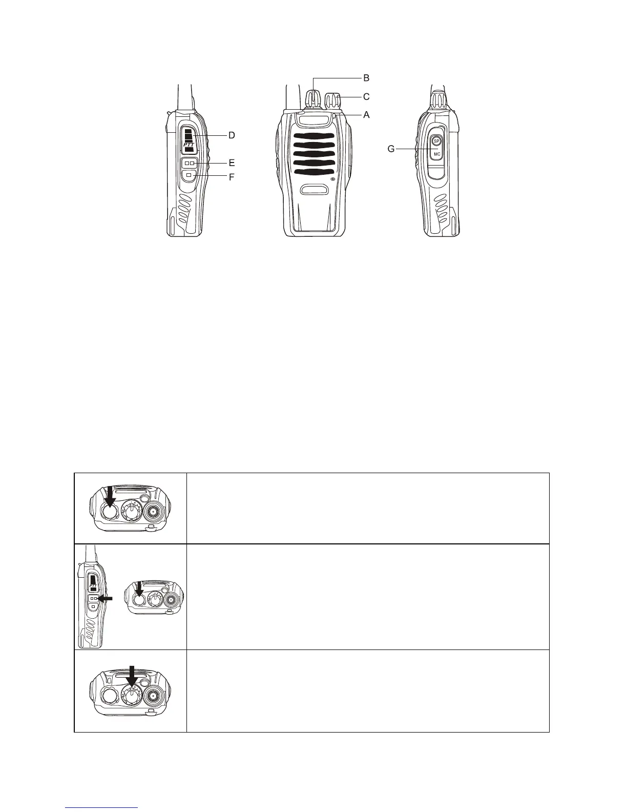 B. Kanalwahlschalter — Drehen, um einen Kanal zwischen CH 1 und CH 16 einzustellen. Die