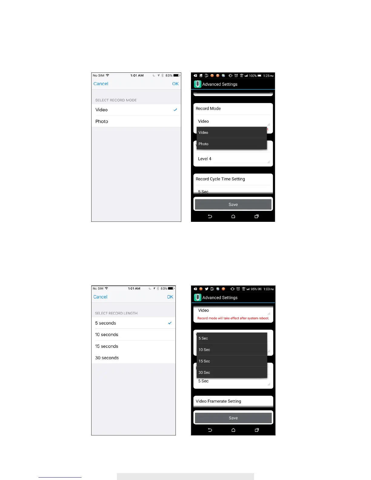 ALC AWFB15 - Record Mode and Cycle Time; Selecting Record Mode; Setting Record Cycle Time