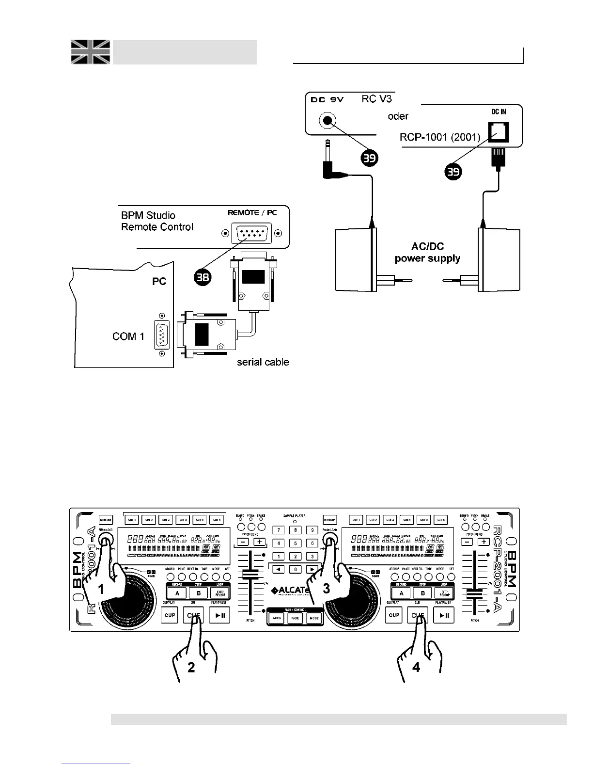 2.) Connect the supplied power supply unit [39]