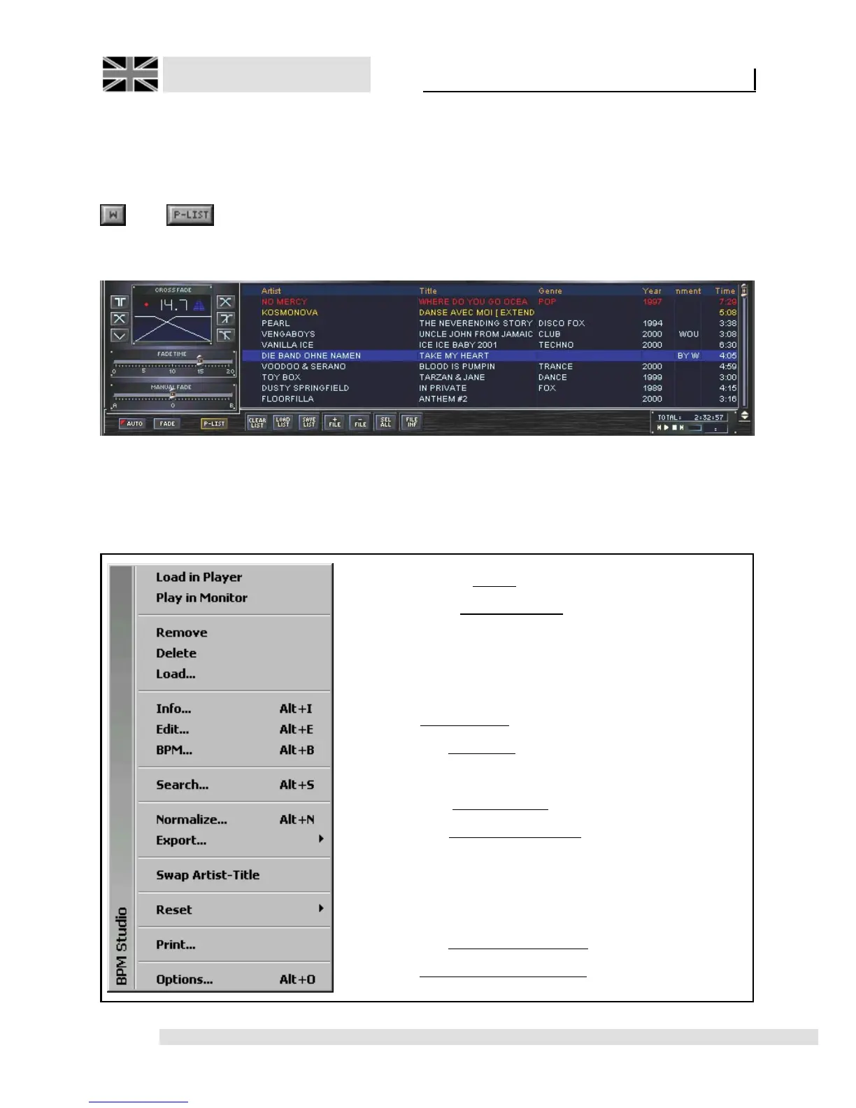 Pop Up menu for play list