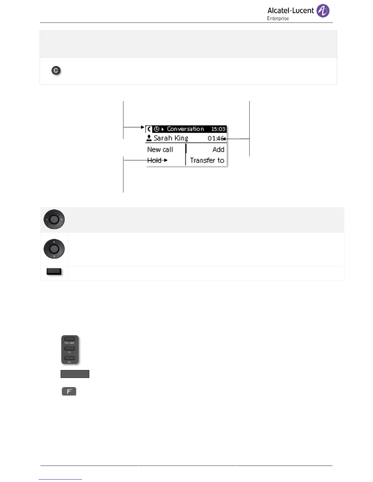 arrows to move up or down a page. These functions (transfer, conference, etc.) are directly