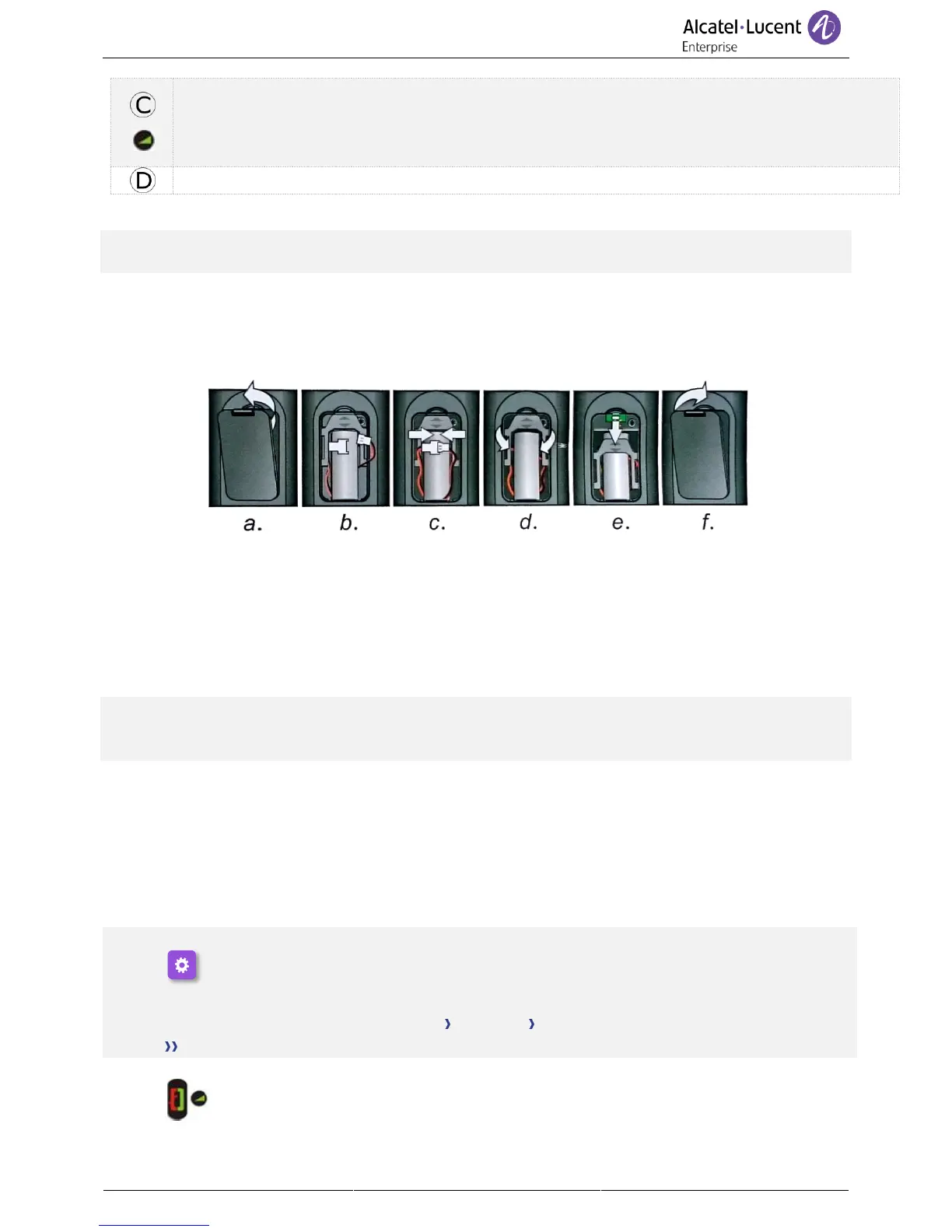 At the first use, you have to connect the battery to the handset. The battery is placed in its compartment