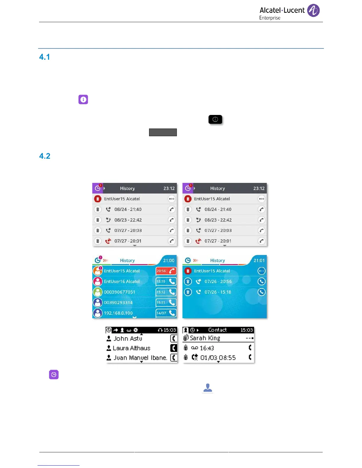 The call log can be consulted and managed when the phone is in the idle state. The main part of the