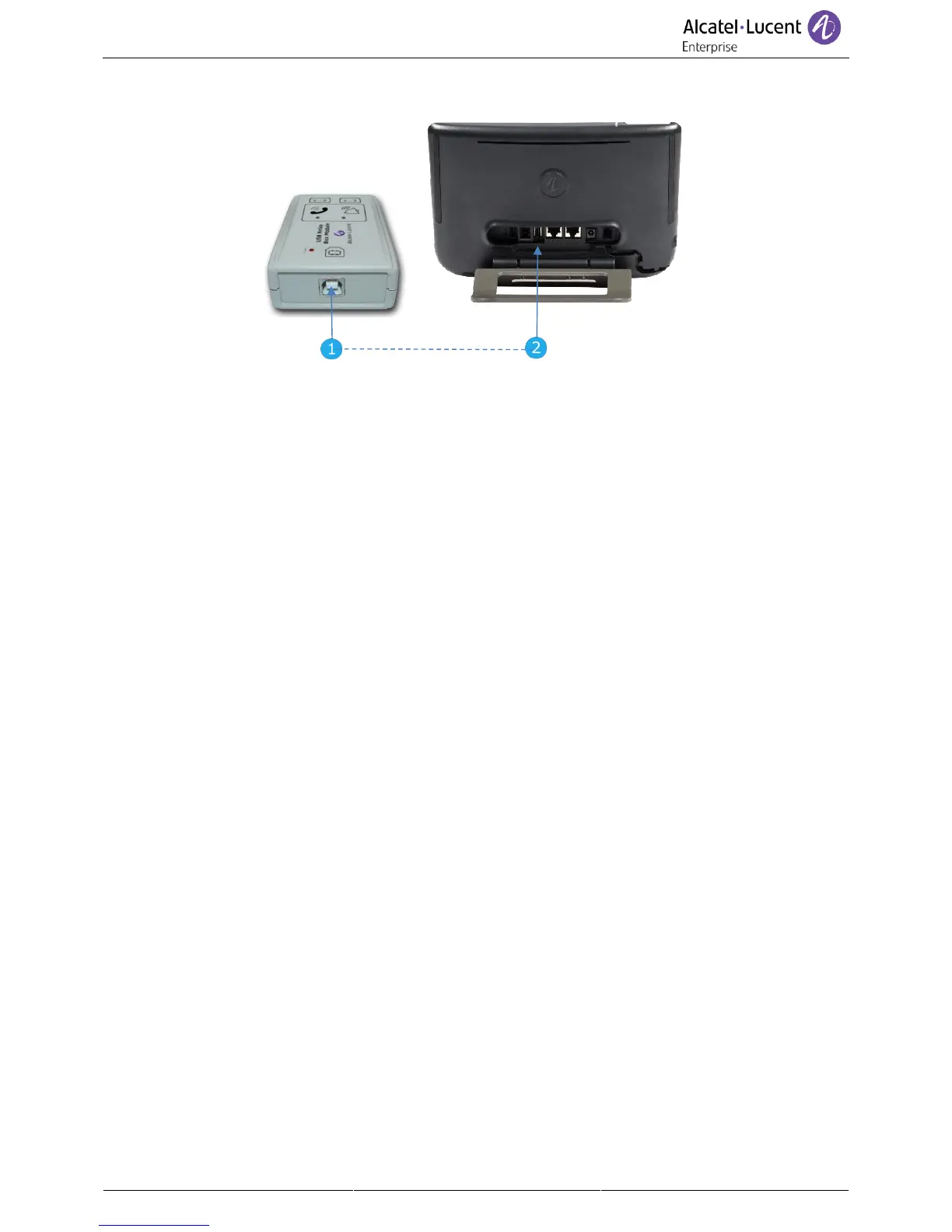 Plug the provided cord USB type A on the USB connector of the deskphone. See description of
