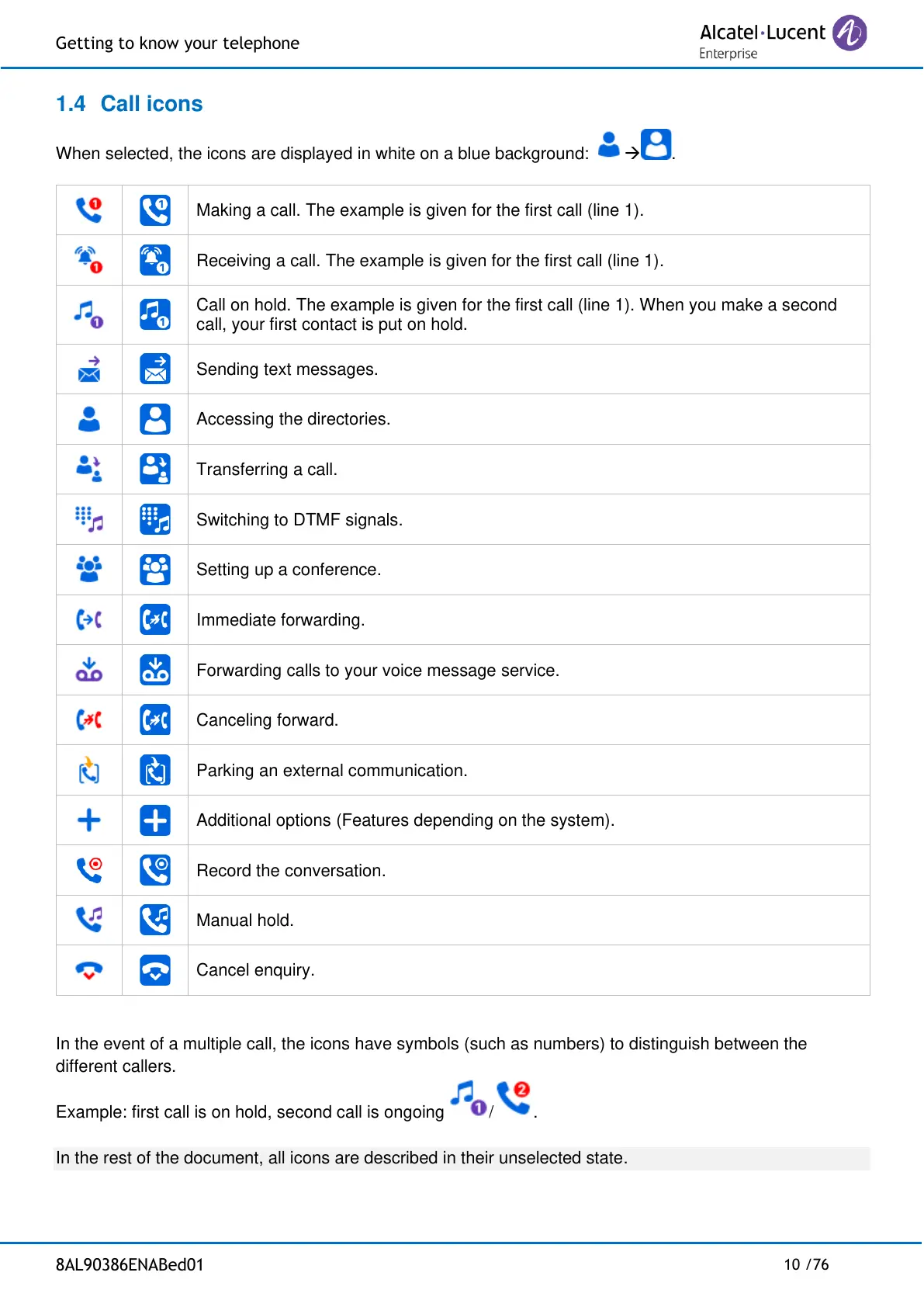 In the event of a multiple call, the icons have symbols (such as numbers) to distinguish between the