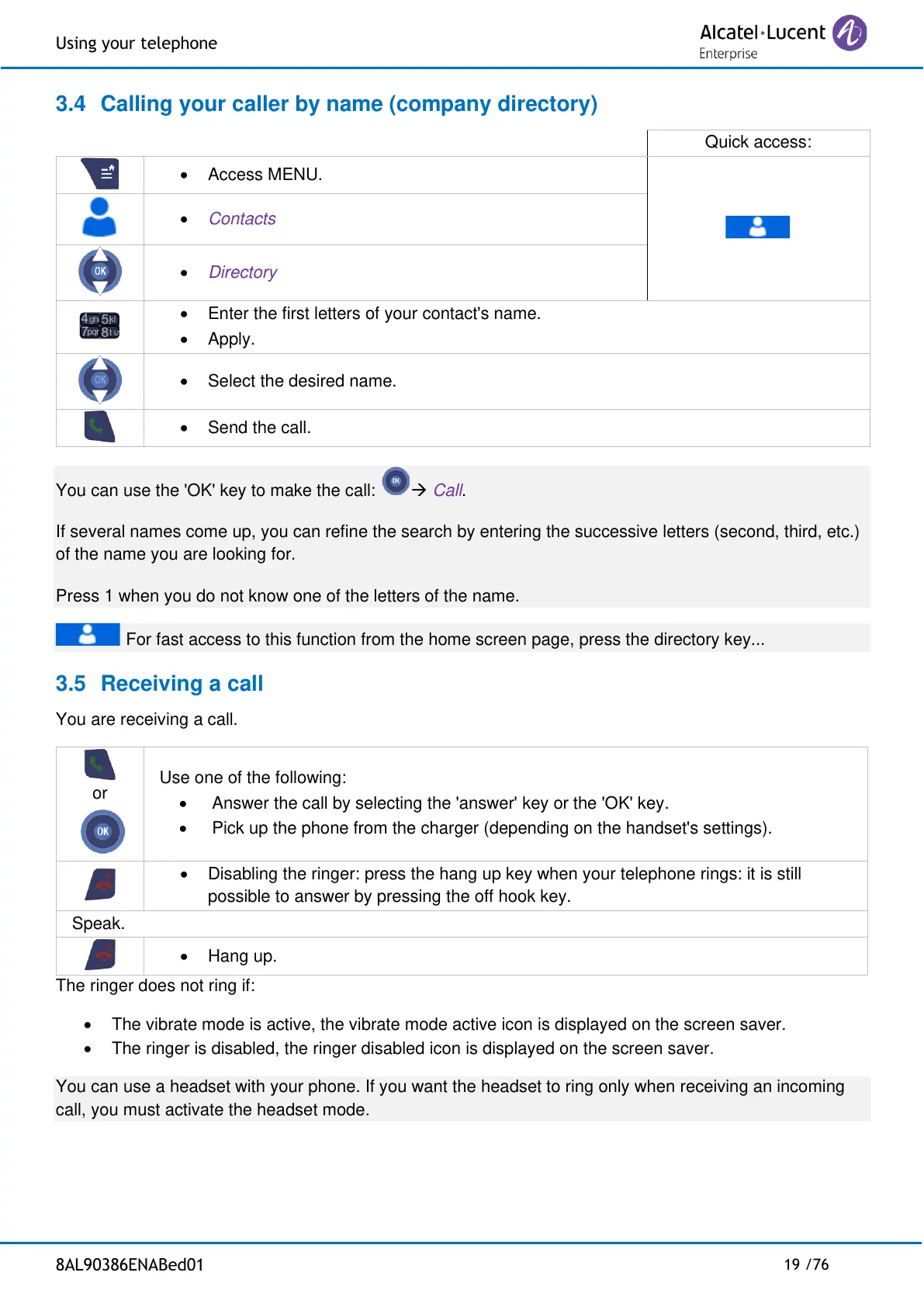 3.5 Receiving a call