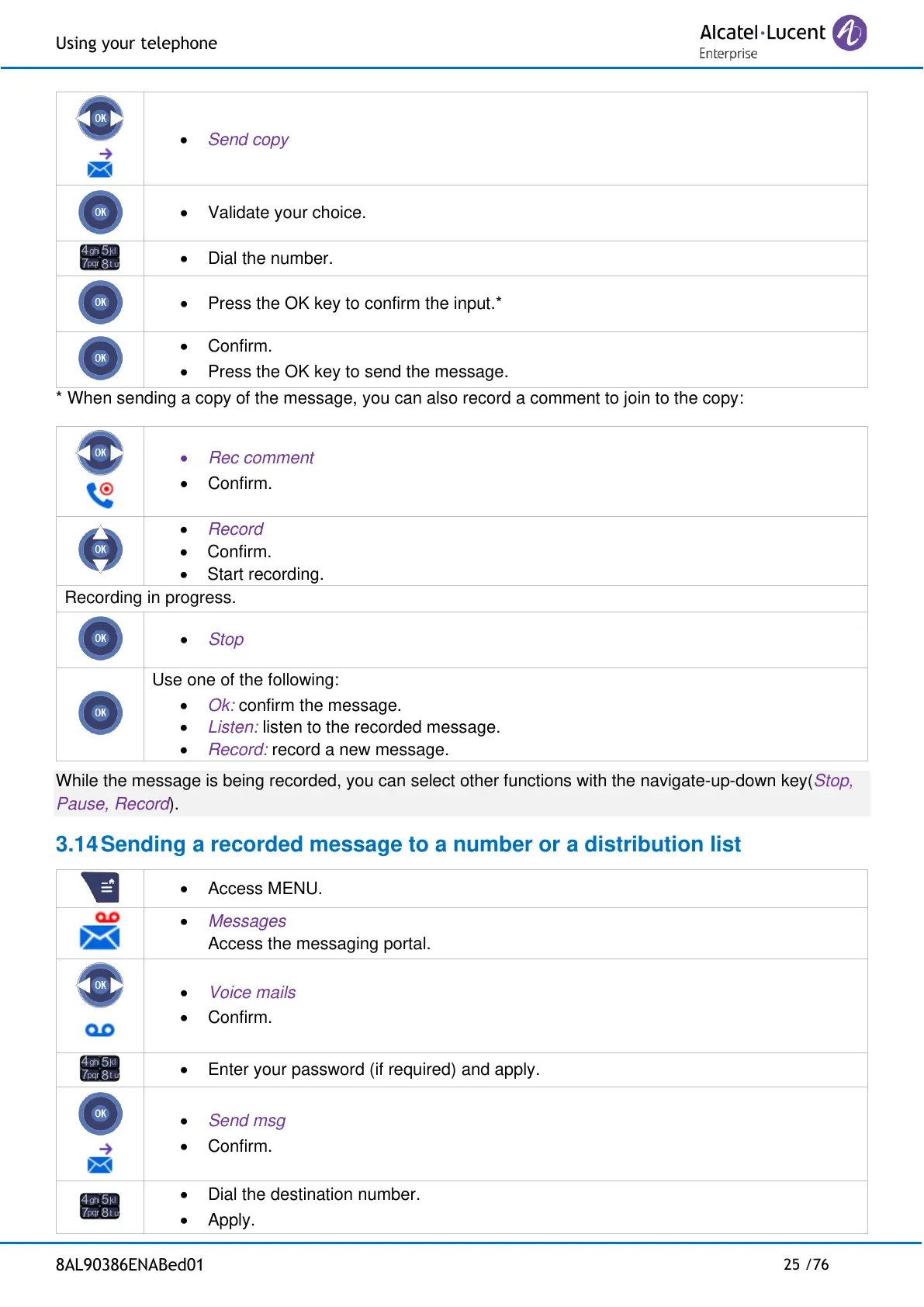 * When sending a copy of the message, you can also record a comment to join to the copy: