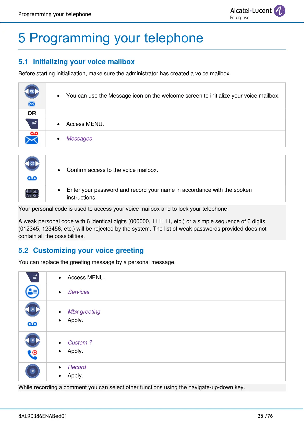 5.1 Initializing your voice mailbox