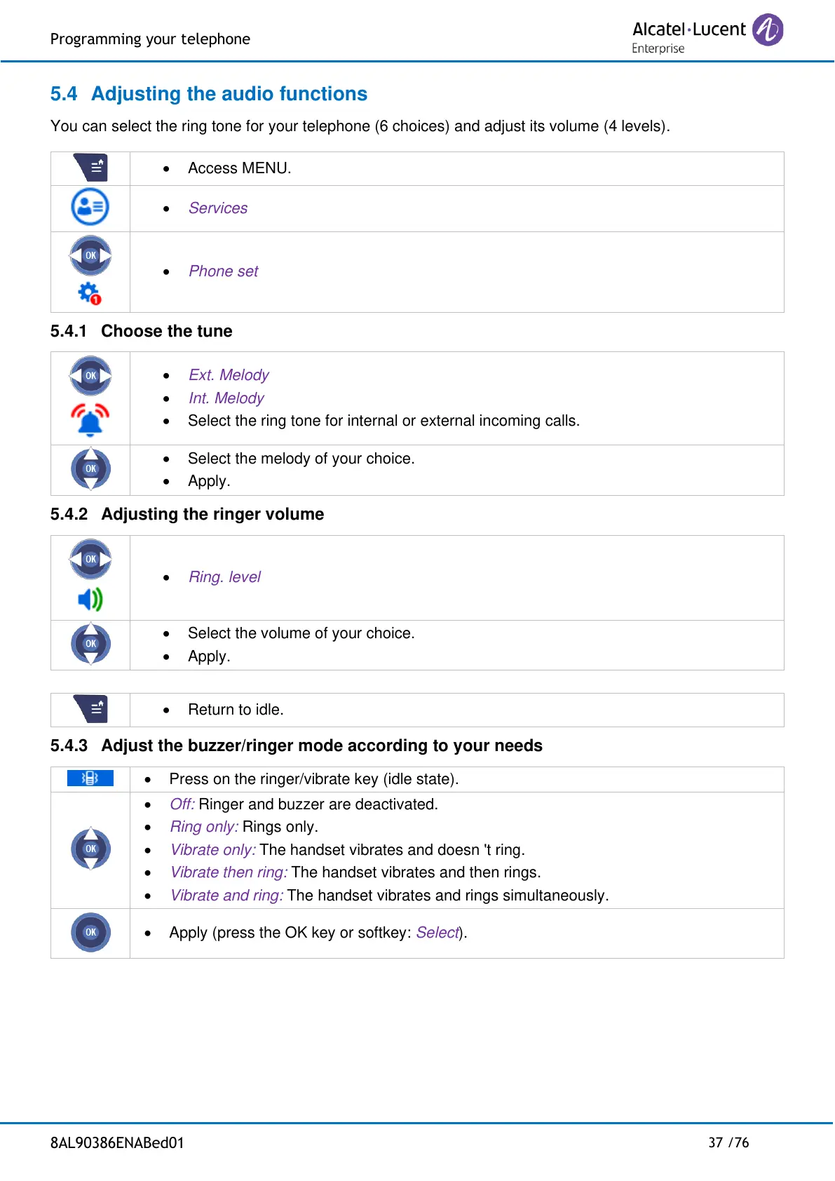 5.4.3 Adjust the buzzer/ringer mode according to your needs