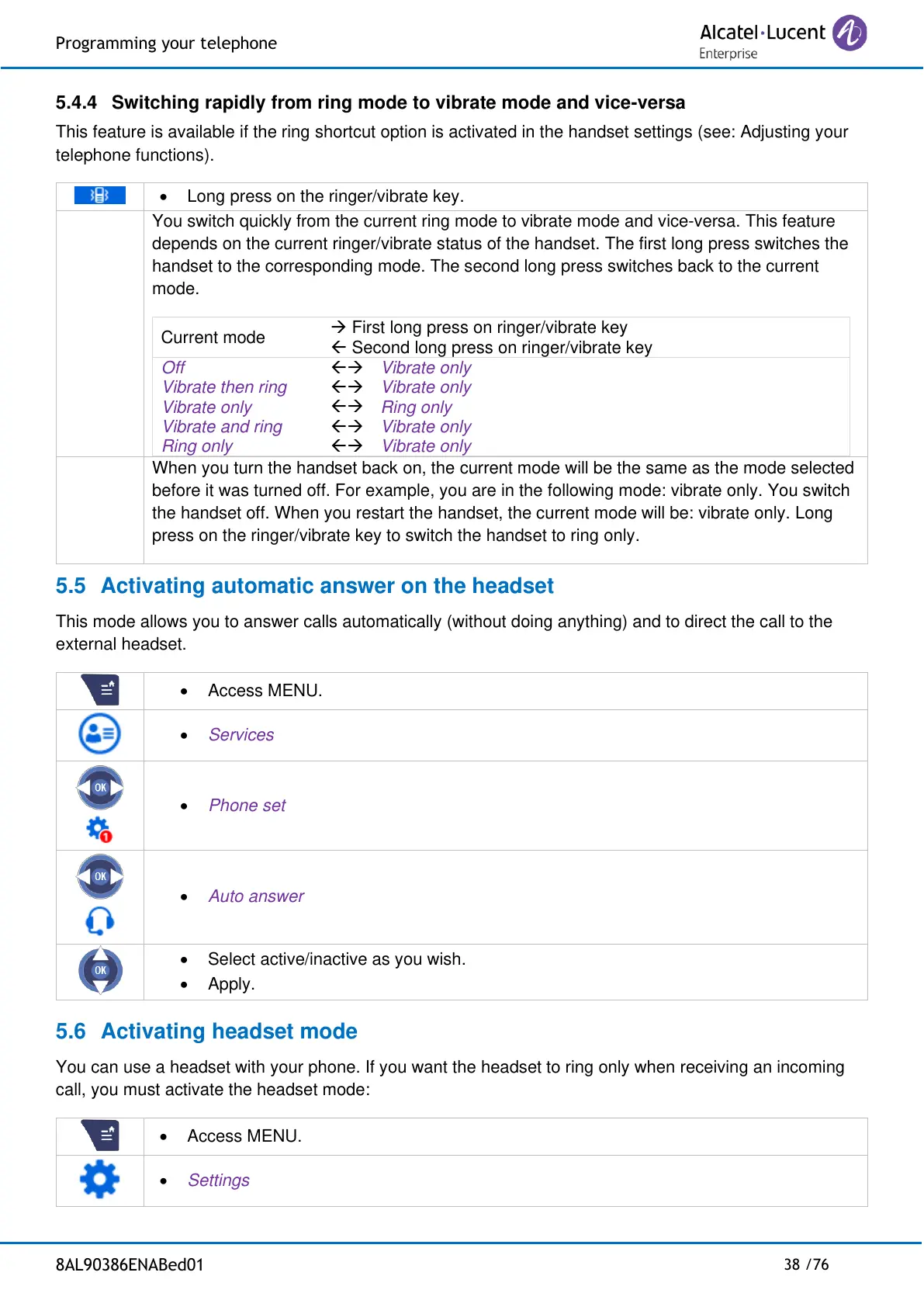 5.4.4 Switching rapidly from ring mode to vibrate mode and vice-versa