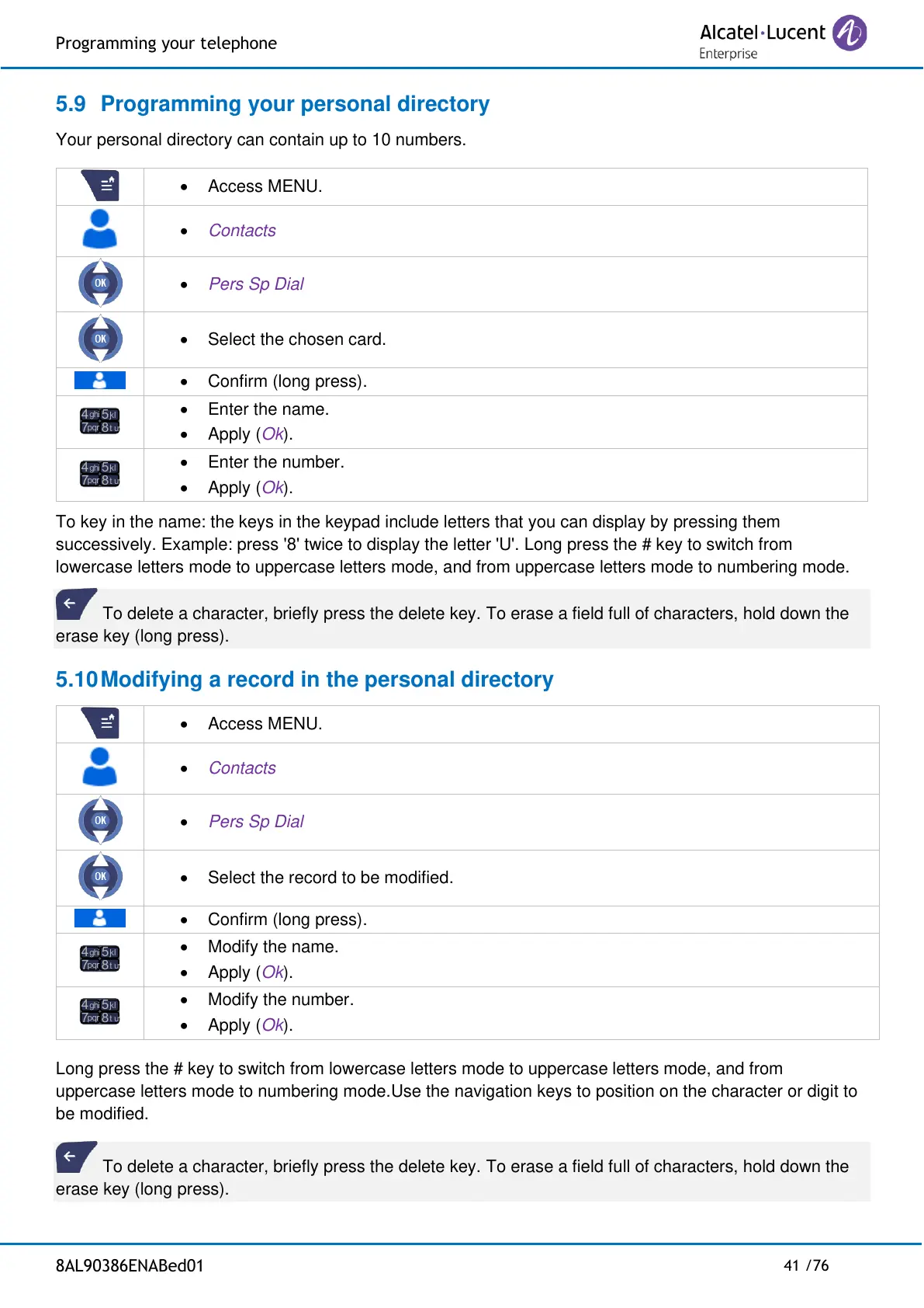 5.10 Modifying a record in the personal directory