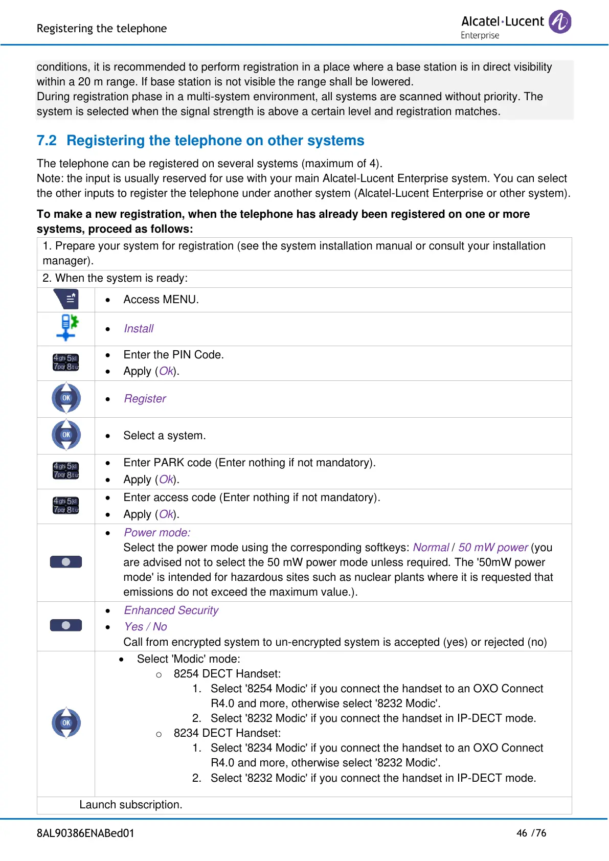 the other inputs to register the telephone under another system (Alcatel-Lucent Enterprise or other system).