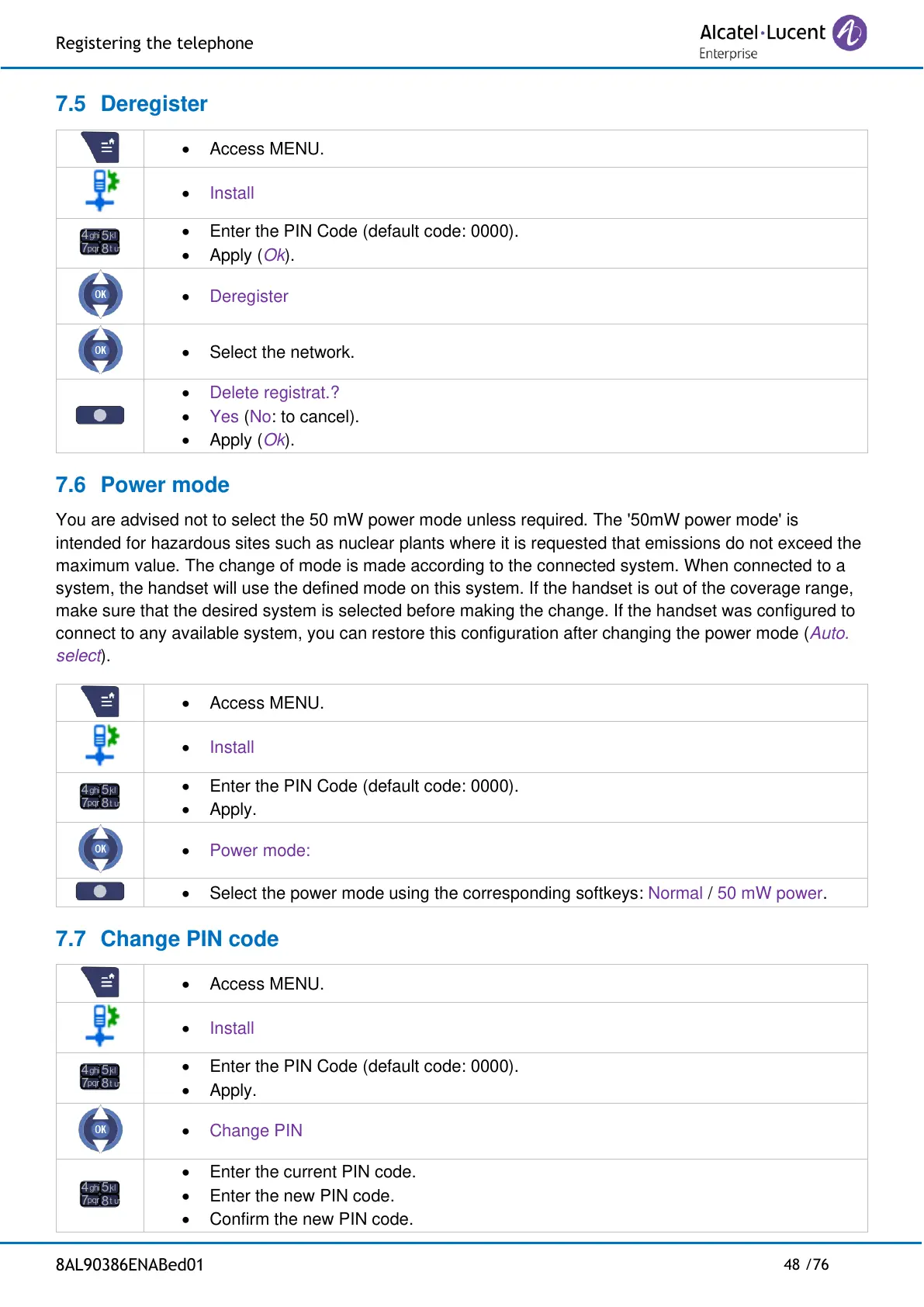 • Enter the new PIN code.
