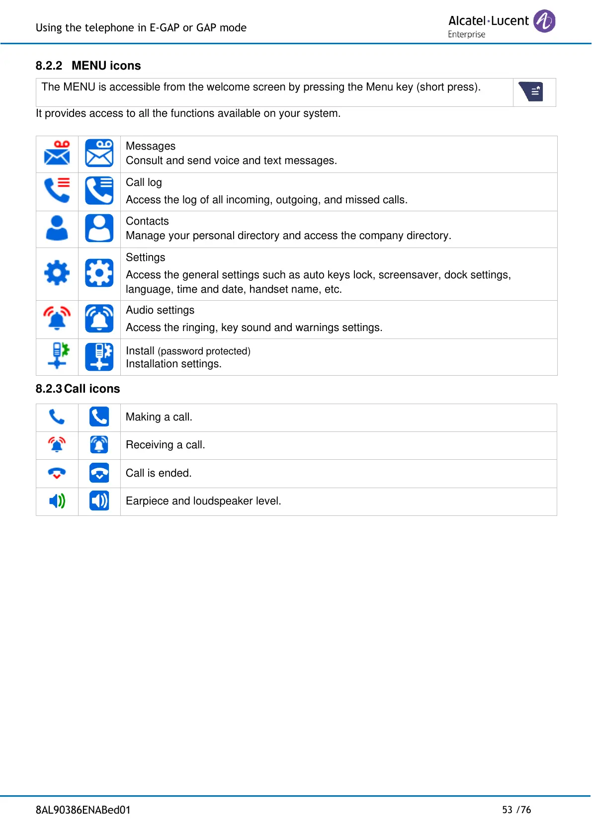 Using the telephone in E-GAP or GAP mode