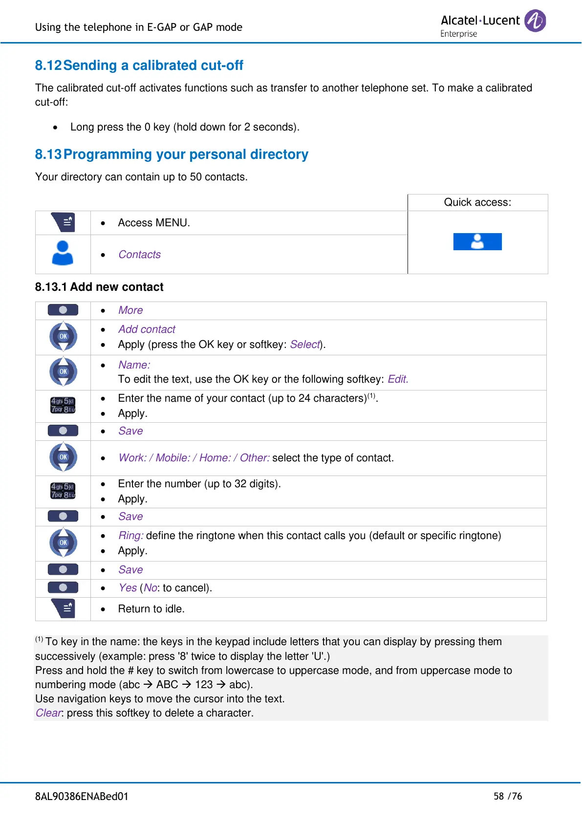 To key in the name: the keys in the keypad include letters that you can display by pressing them