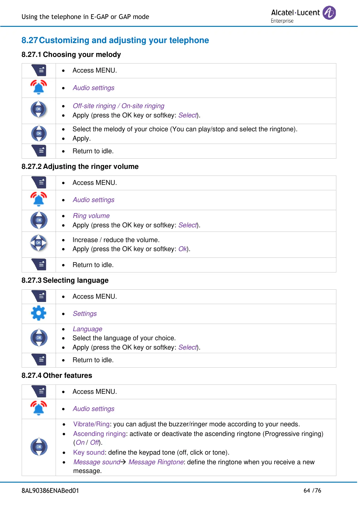 8.27 Customizing and adjusting your telephone