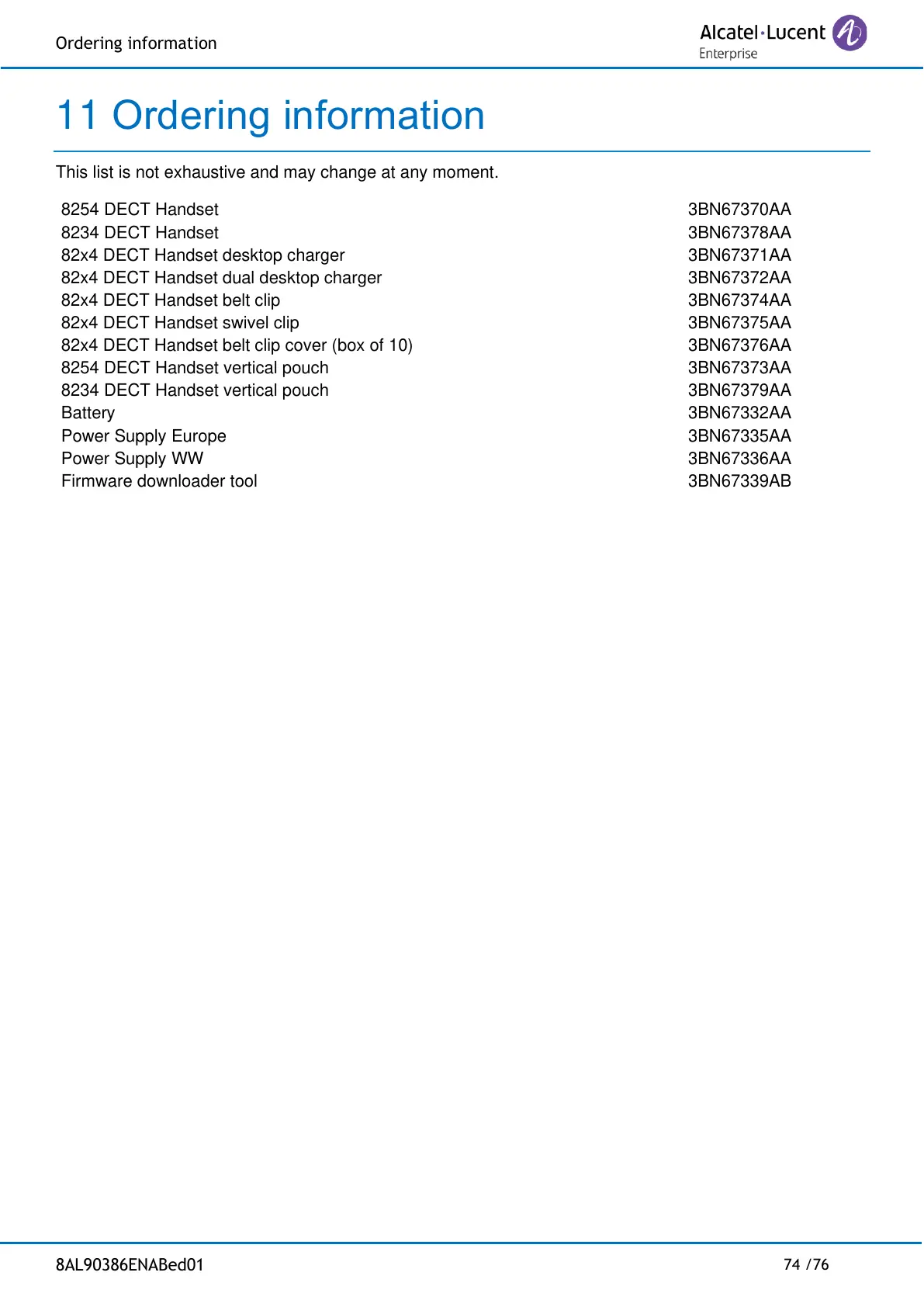 Alcatel-Lucent Enterprise 8234 - Ordering Information