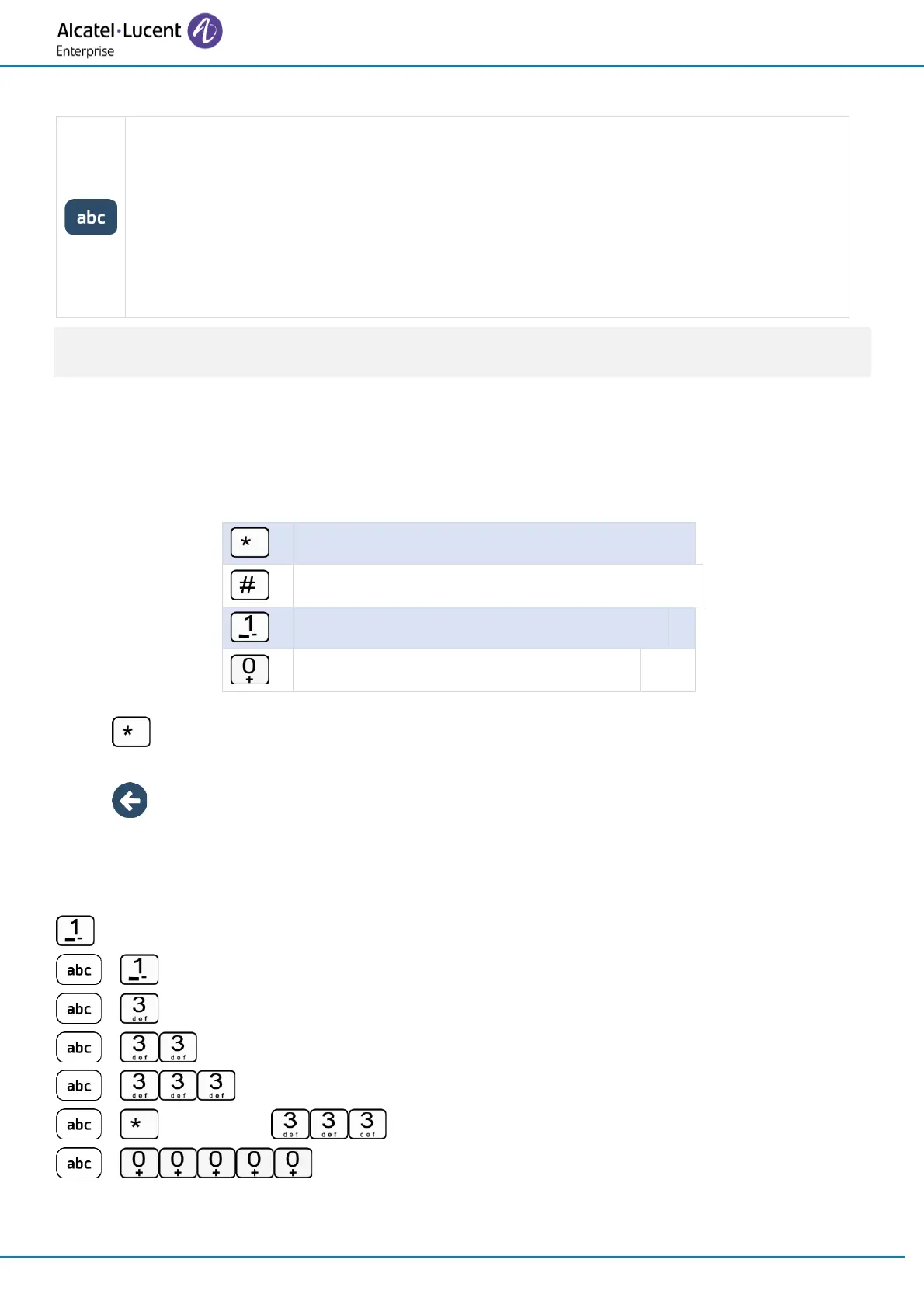• Use this key to delete the last entered character. The alphabetic mode remains