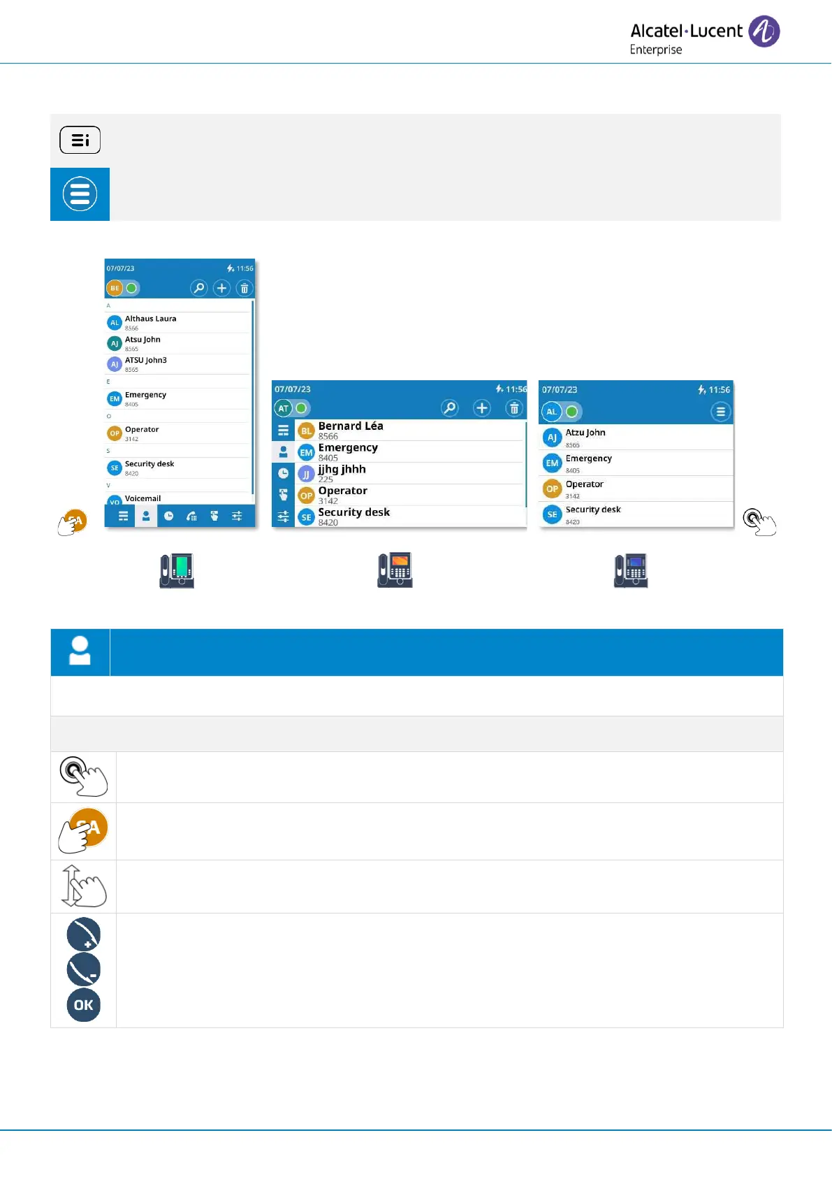 Display your personal directory: all saved contacts are displayed alphabetically.