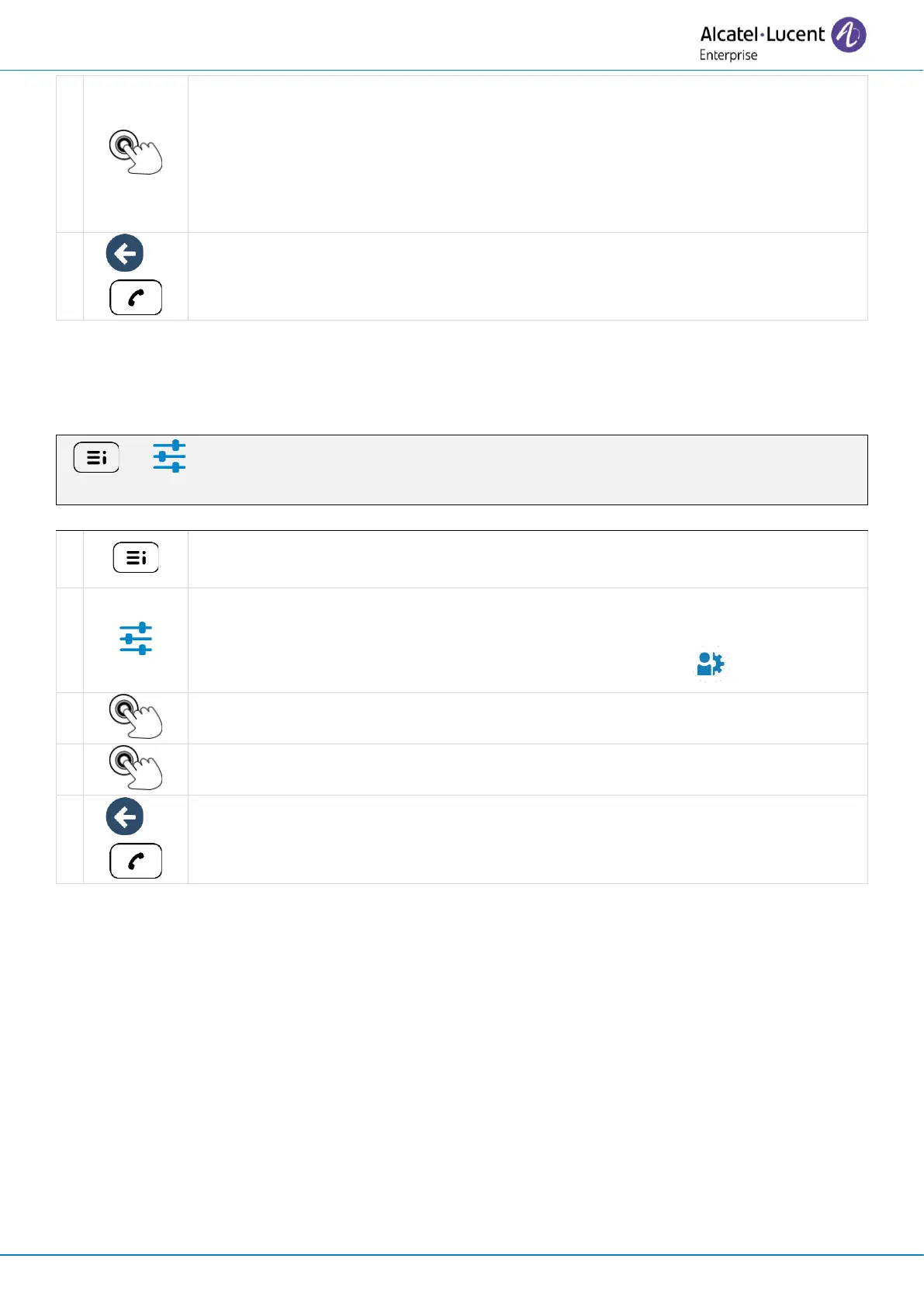 The user settings are displayed by default (ALE-500/ALE-400: , ALE-300: User).