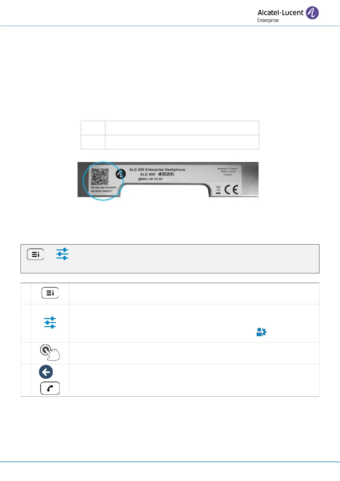 The codes are located on the foot of the phone. This label is an example and does not represent the