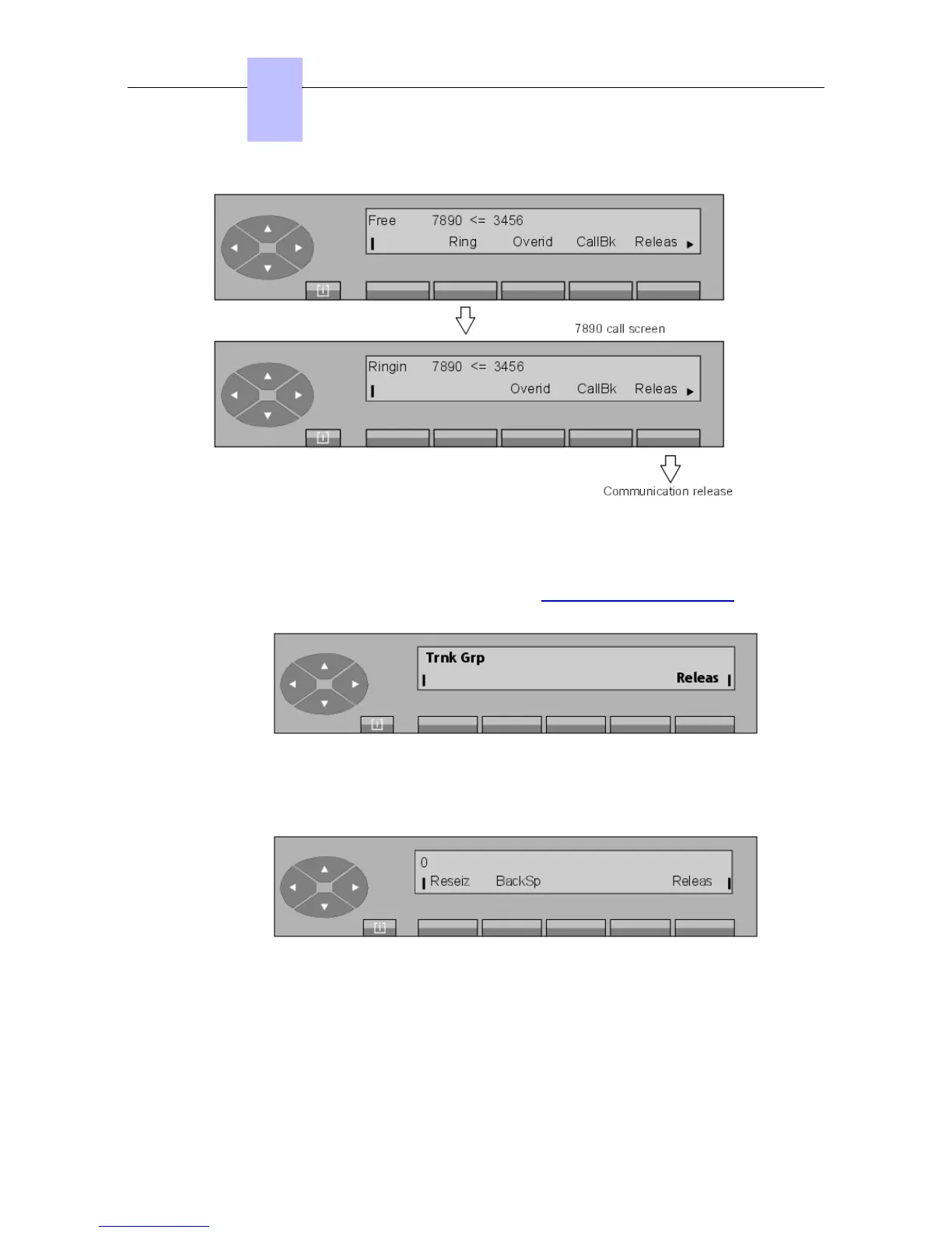 Trnk Grp is the name of the group of external lines. Pressing the Releas key releases the