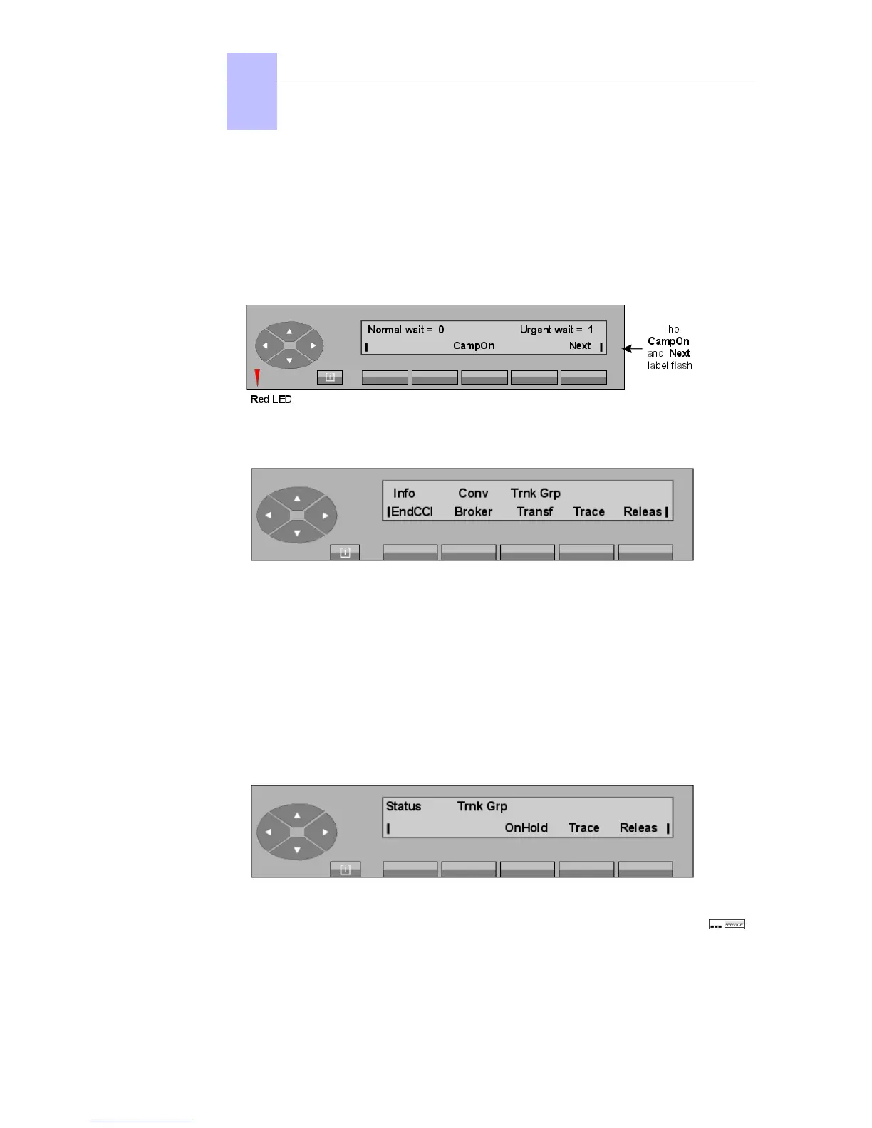 When the attendant seizes the call, on pressing the CampOn or Next key, the display shows: