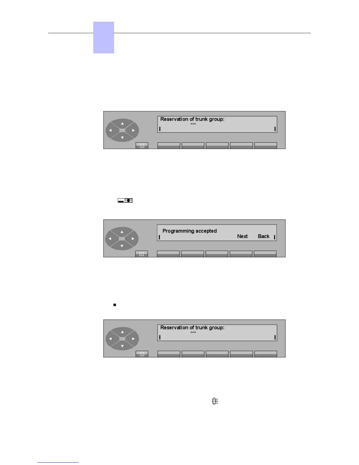 Pressing the Select key authorizes reservation of one or more trunk groups.