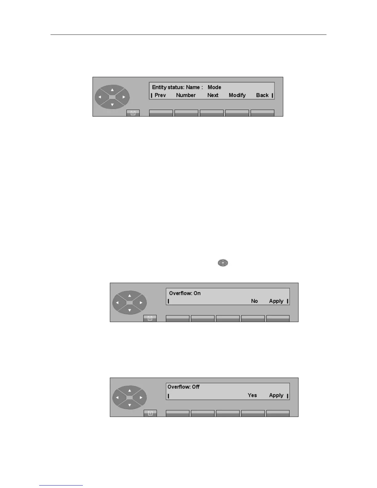 Overfl key, the screen displays the following:
