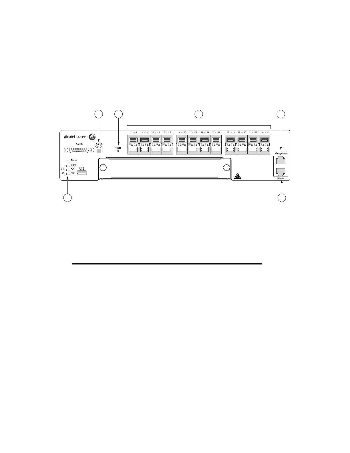 1 Alarm LEDs and 10G port LEDs for 7210 SAS M 24F 2XFP