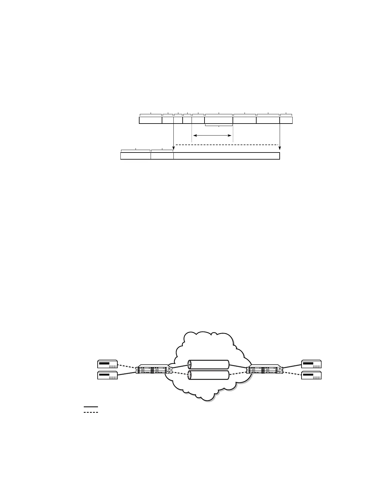 Figure 25 shows a typical Ethernet VLL frame together with its MPLS tunnel encapsulation: