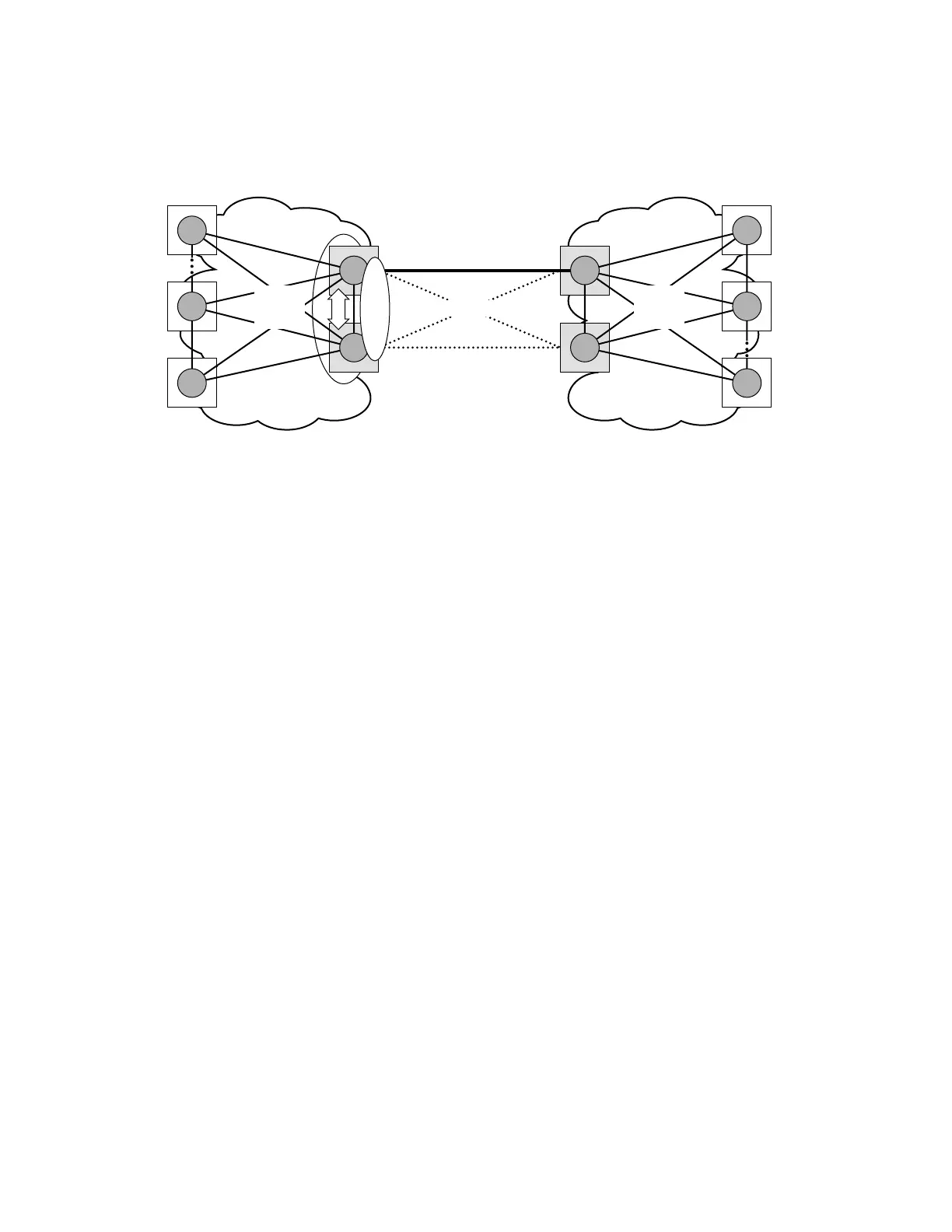 The two gateway pairs, PE3-PE3and PE1-PE2, are interconnected using a full mesh of four