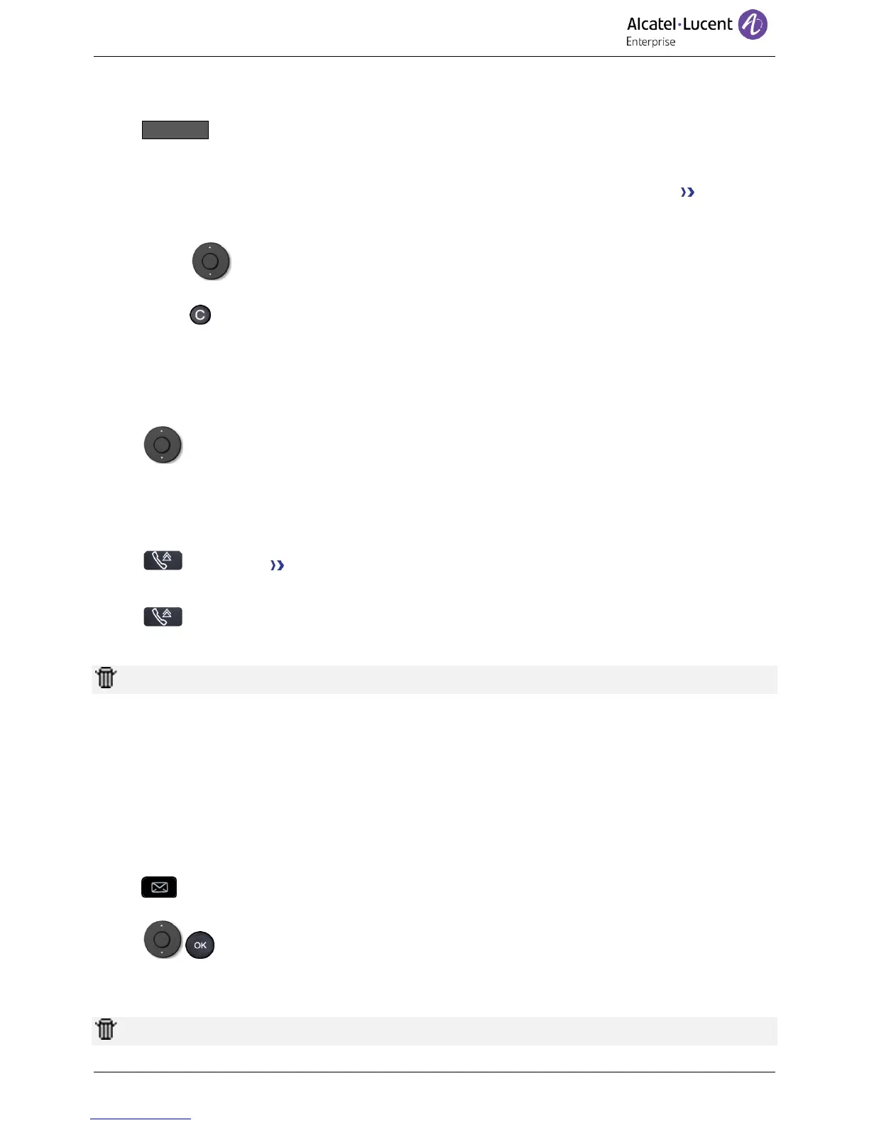 : Press the key associated with the trash icon to delete the list of last dialed numbers.