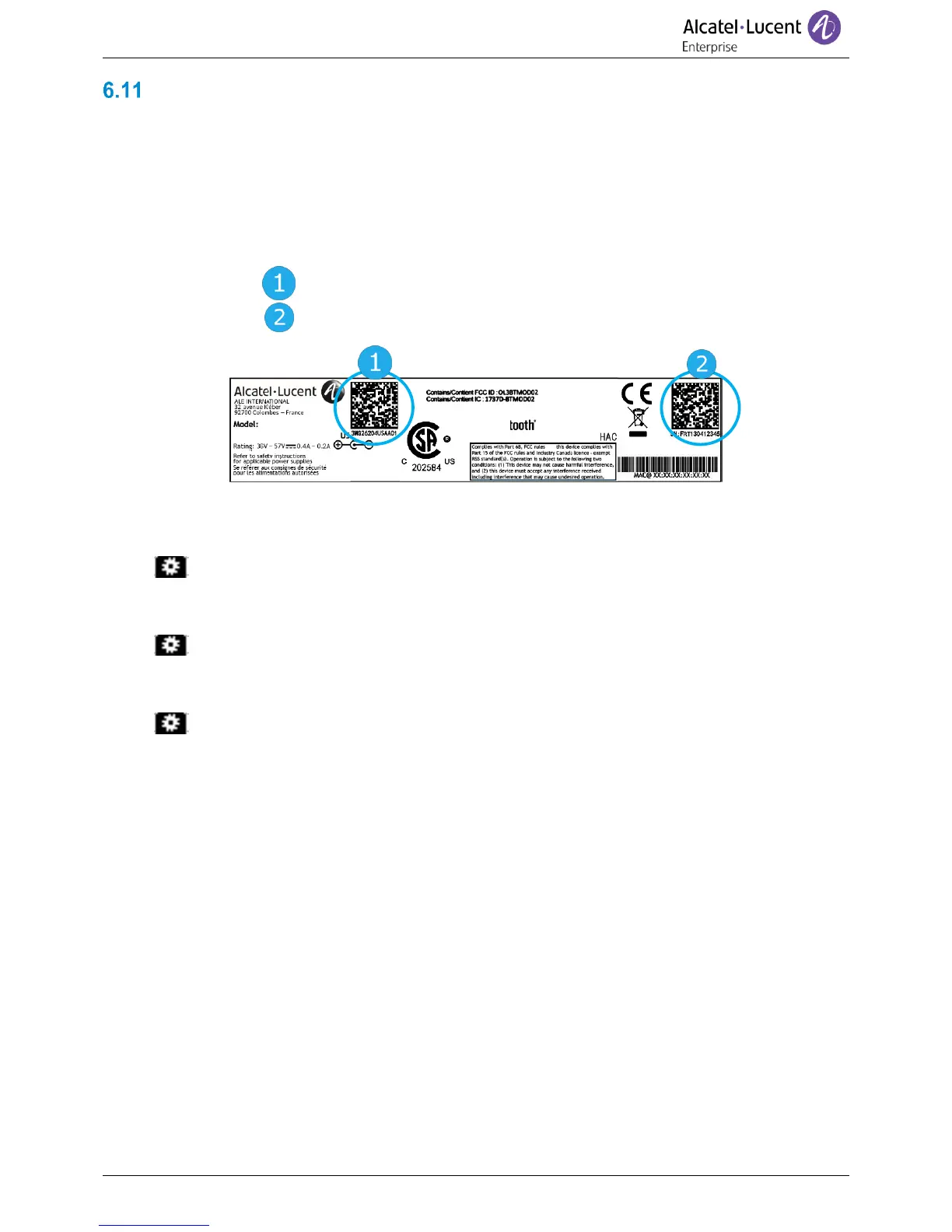The codes are located under the backshell of the phone. This label is an example and does not