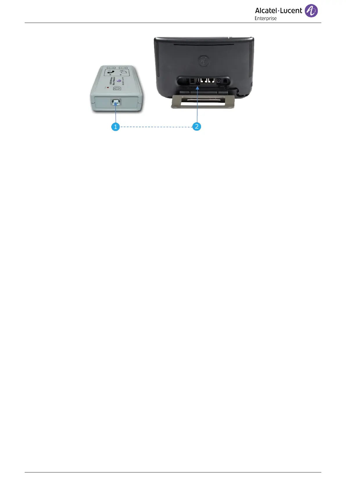 Plug the provided cord USB type A on the USB connector of the deskphone. See description of