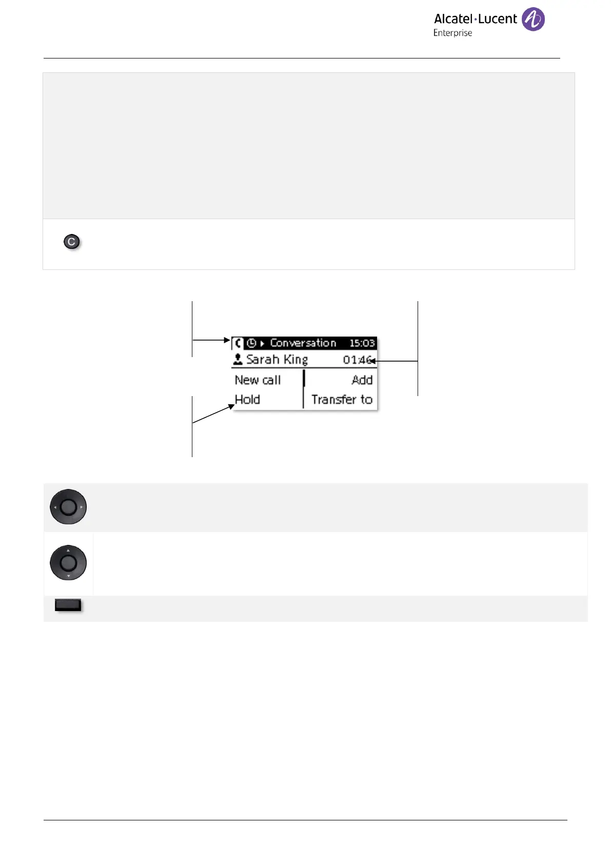 move up or down a page. These functions (transfer, conference, etc.) are directly related to the status of
