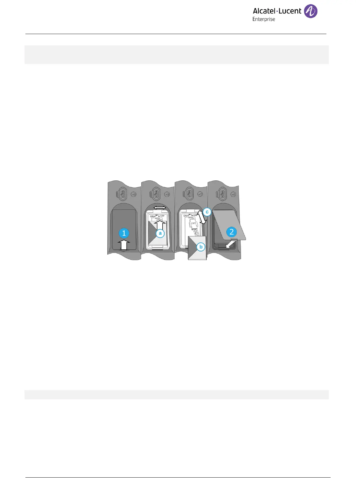To replace the battery, with the handset turned off: