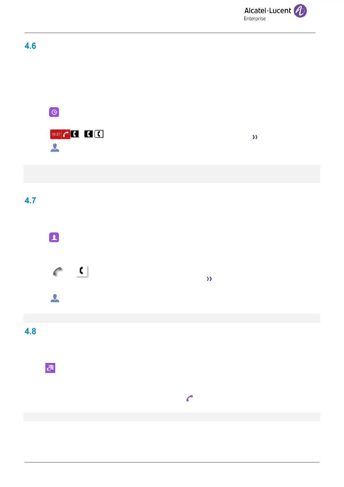 • Select the history icon from the phone menu (see the navigation section of your phone model).