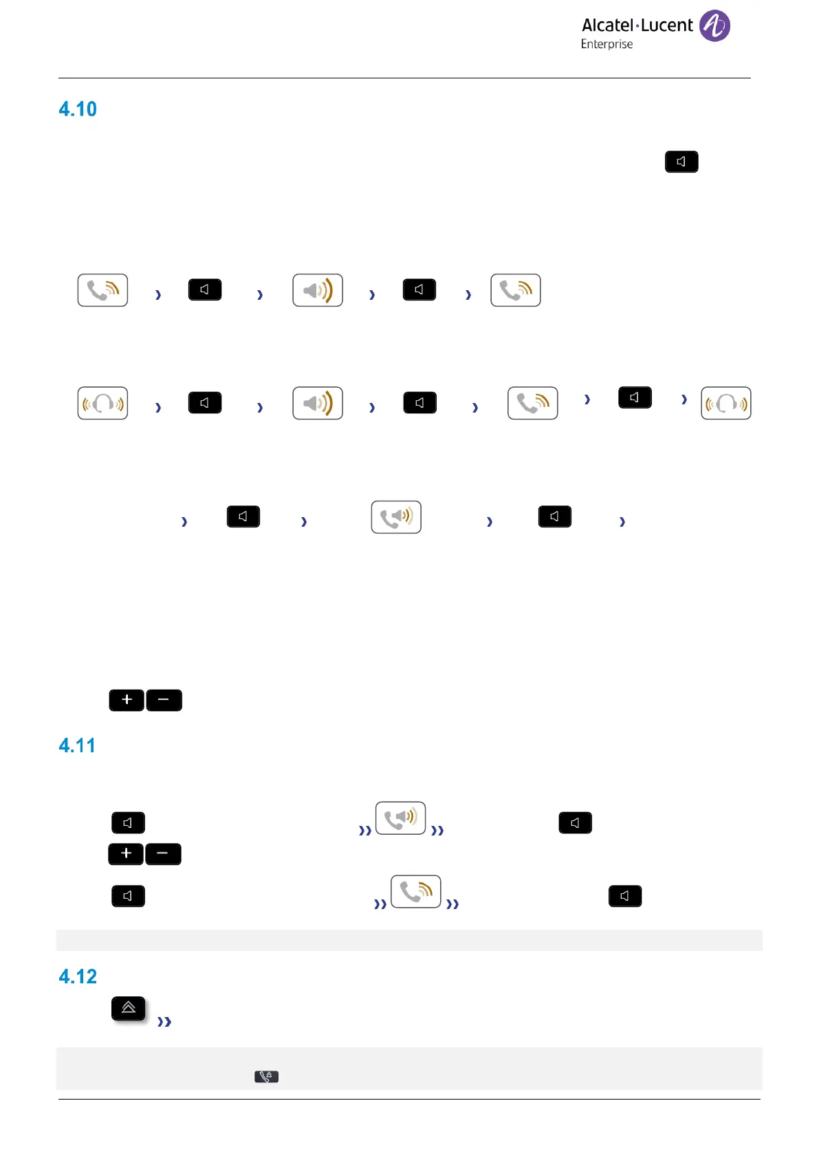 connected) by pressing the loudspeaker/hands-free key until the desired audio mode is displayed: . This