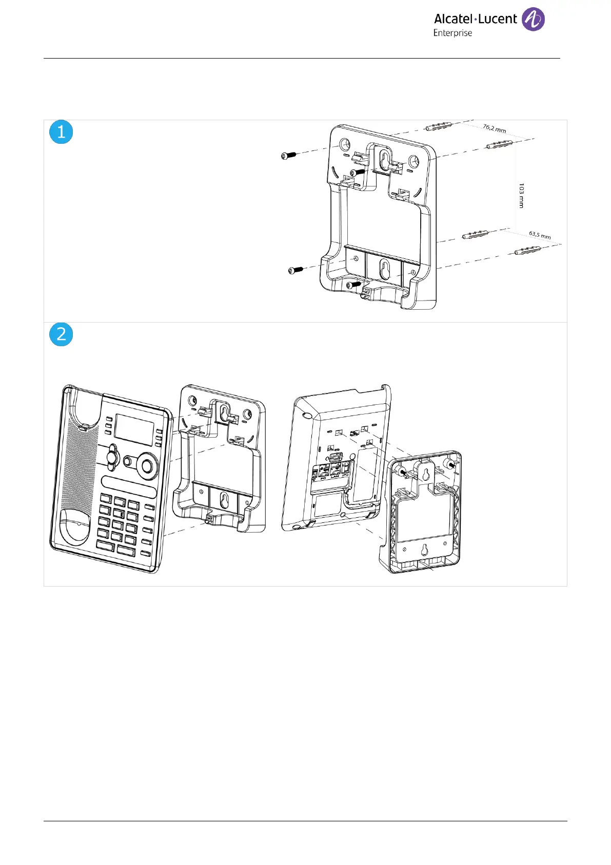 Assemble the phone with the wall mount kit by using the 5 hooks of the support.