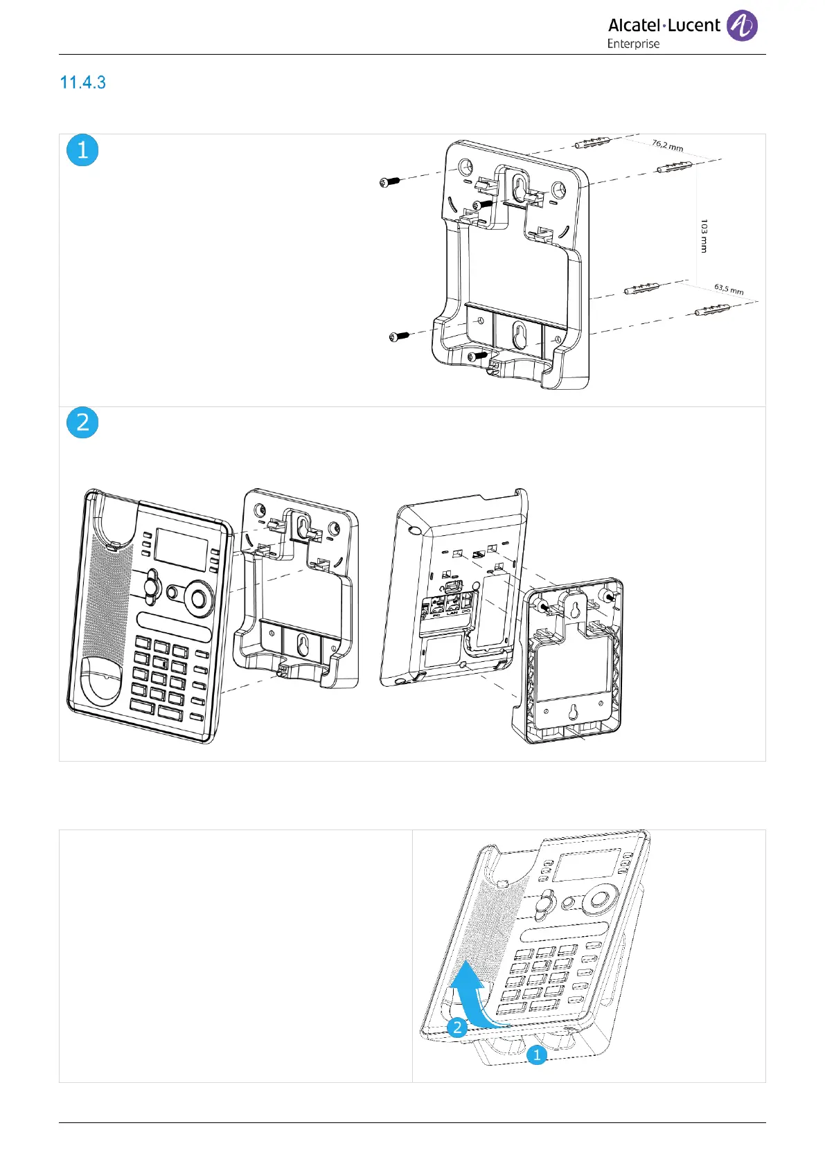 Assemble the phone with the wall mount kit by using the 5 hooks of the support.
