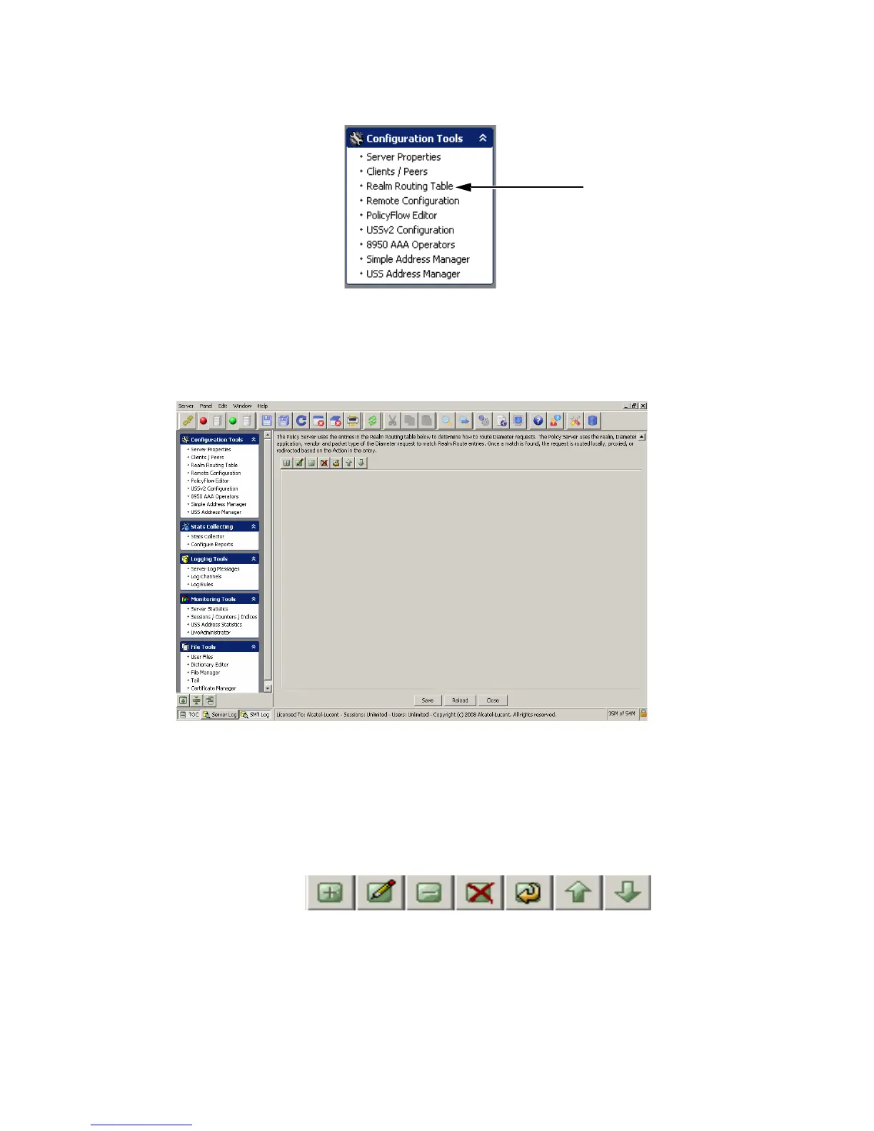 The Realm Routing Table panel (Figure 6-2) contains a menu bar that consists of a set of